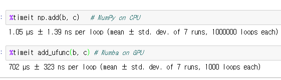 1. NumPy Universal Functions(ufuncs)를 탑재한 GPU용 Numba 소개