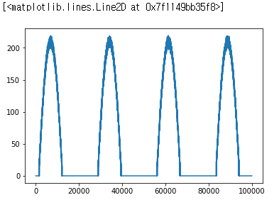 pulses = np.maximum(np.sin(np.arange(n) / (n / 23)) - 0.3, 0.0)