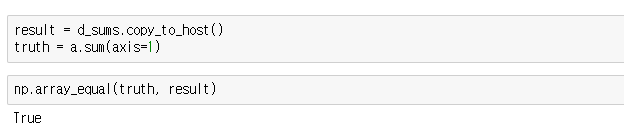 row_sums는 각 스레드를 사용하여 데이터 행을 반복하고 합한 다음, 해당 행 합계를 합계에 저장