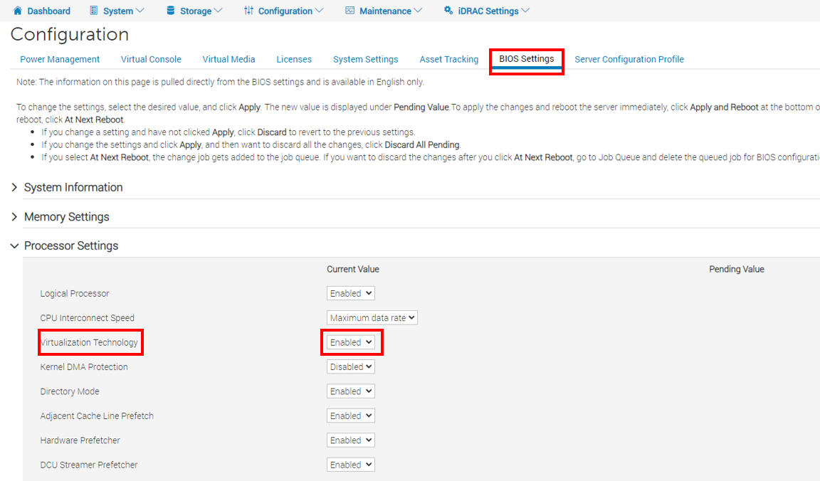 • Bios settings -> Integrated Devices -> SR-IOV Global Enable: Enabled