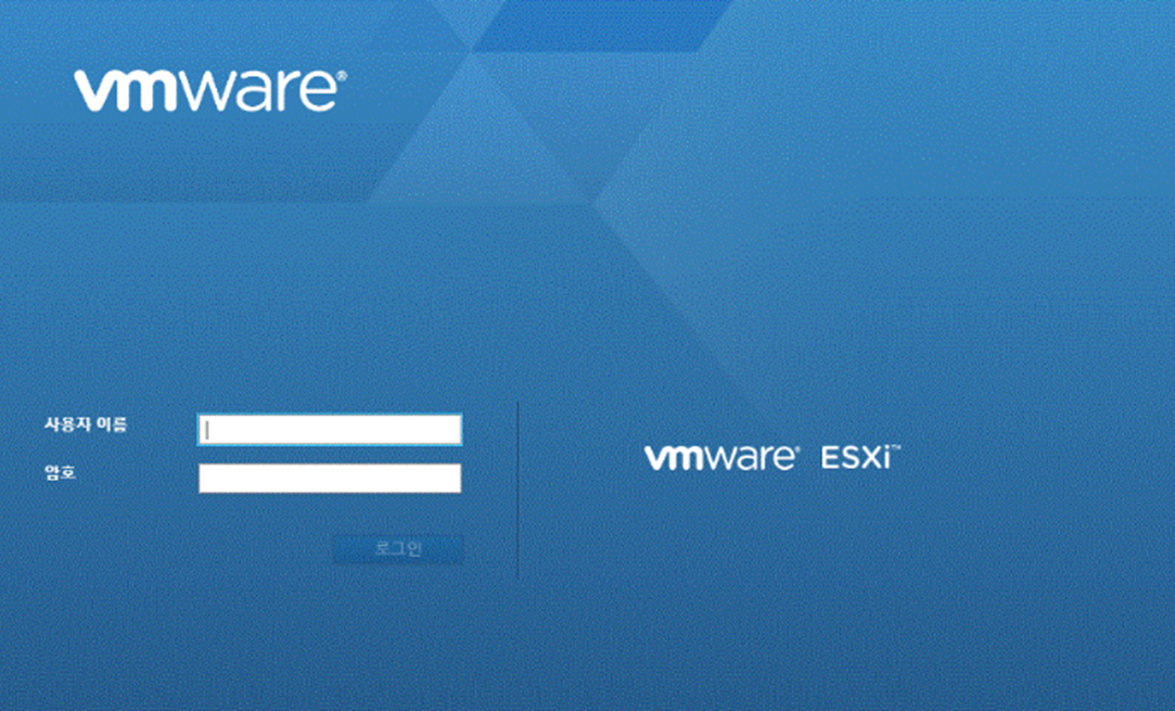 ESXi 설치를 마친 후 브라우저에서 ESXi의 Configure Management Network에서 지정한 IP주소로 들어가면, 아래와 같은 화면이 뜨며 로그인을 해줍니다.