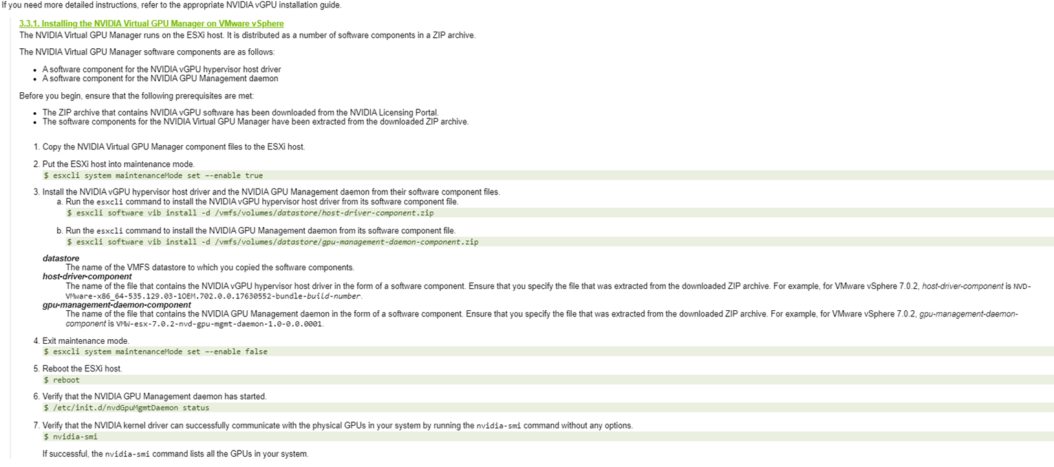 $ esxcli software vib install -d /vmfs/volumes/datastore/아까 저장한 gpu management zip파일이름.zip